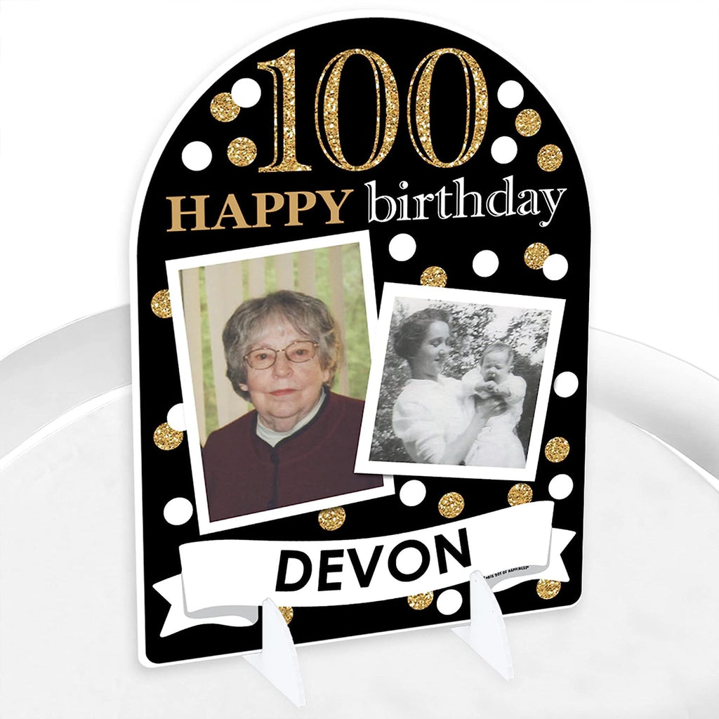 Personalized 100th Birthday Gold Photo Tabletop Sign - Upload 2 Photos - 1 Pc