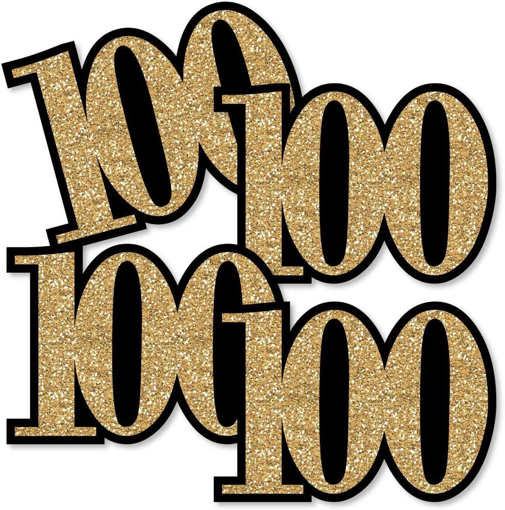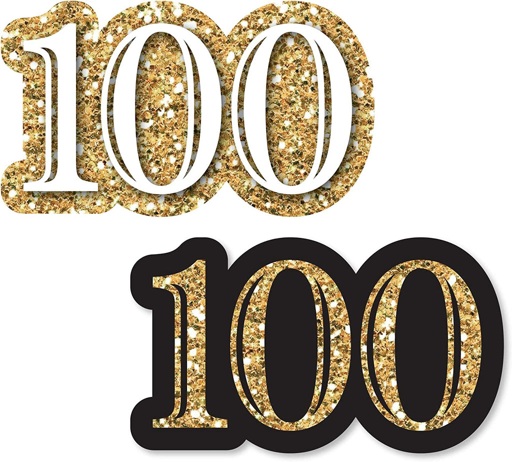Adult 100th Birthday - Gold - DIY Shaped Birthday Party Cut-Outs - 24 Count