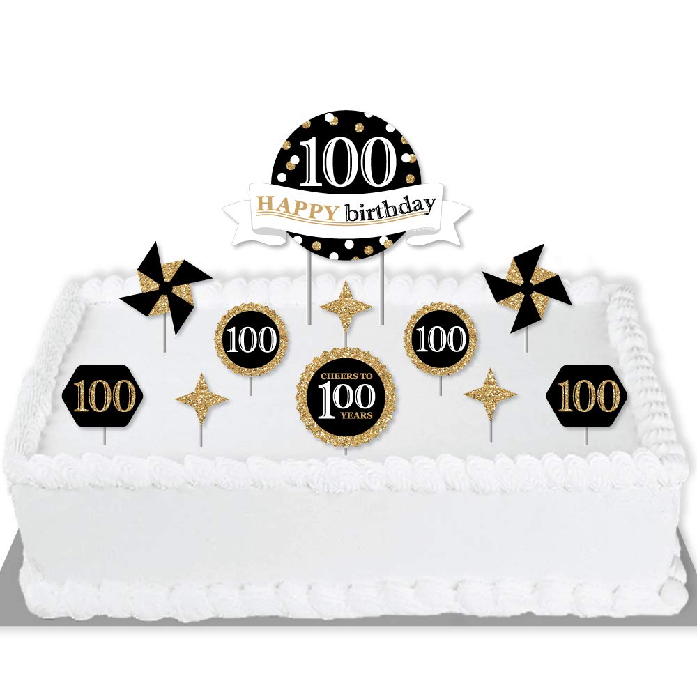 Adult 100th Birthday - Gold - Birthday Party Cake Decorating Kit - Happy Birthday Cake Topper Set - 11 Pieces