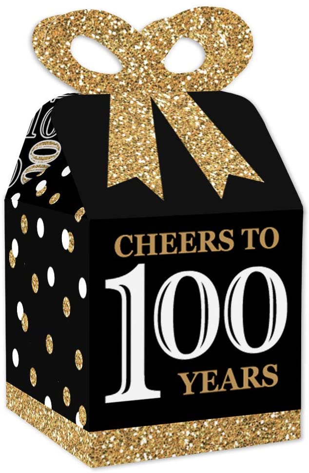 Adult 100th Birthday - Gold - Square Favor Gift Boxes - Birthday Party Bow Boxes - Set of 12