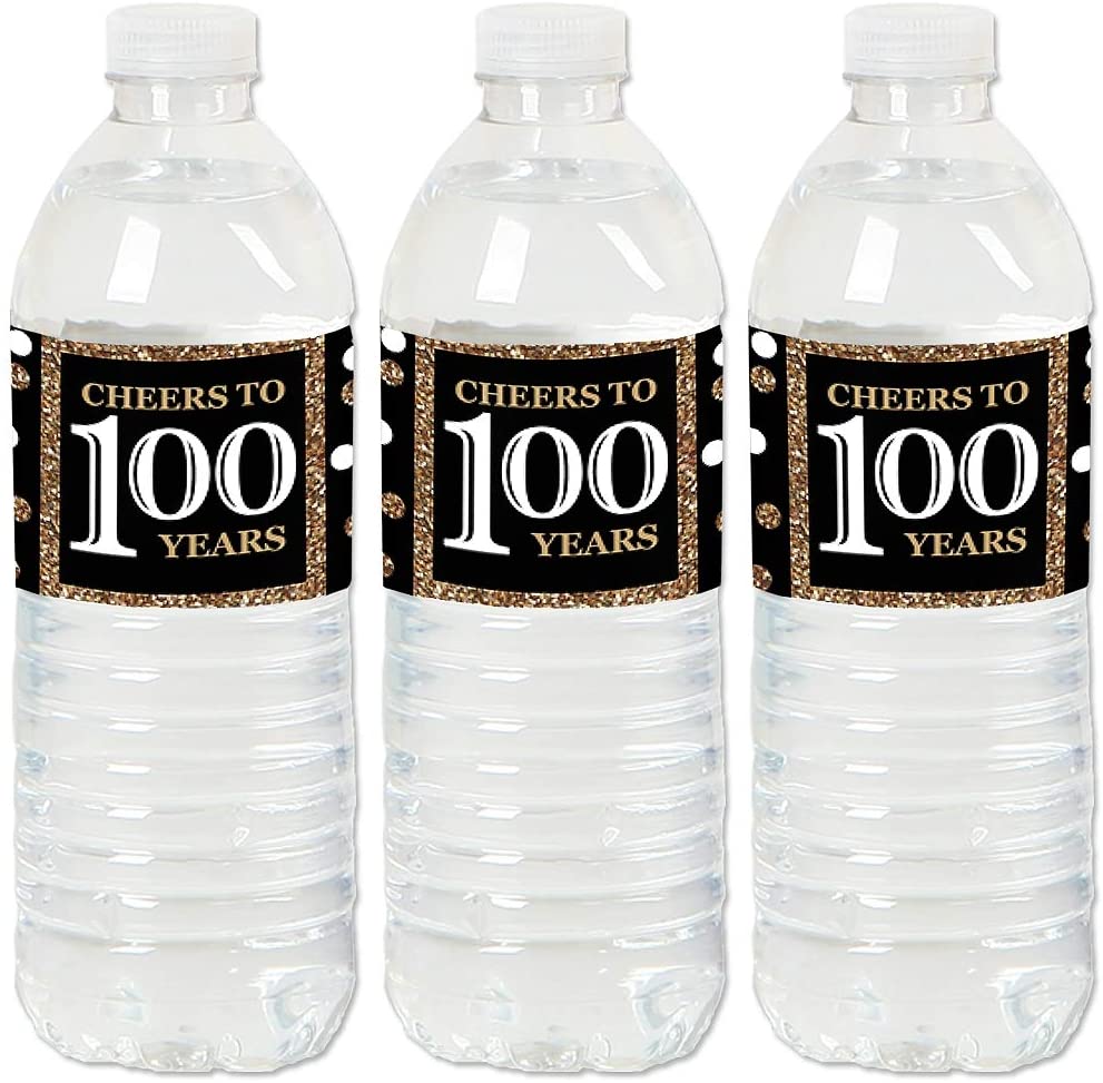 Adult 100th Birthday - Gold - Birthday Party Water Bottle Sticker Labels - Set of 20