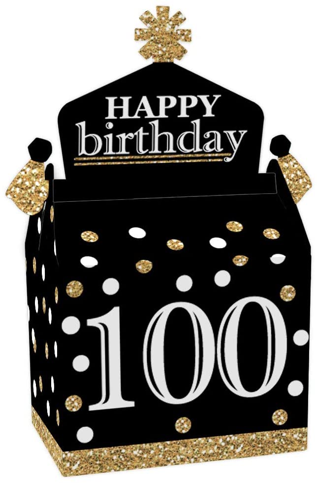 Adult 100th Birthday - Gold - Treat Box Party Favors - Birthday Party Goodie Gable Boxes - Set of 12