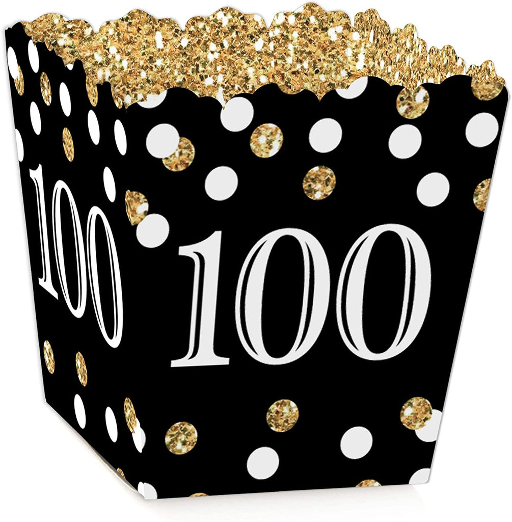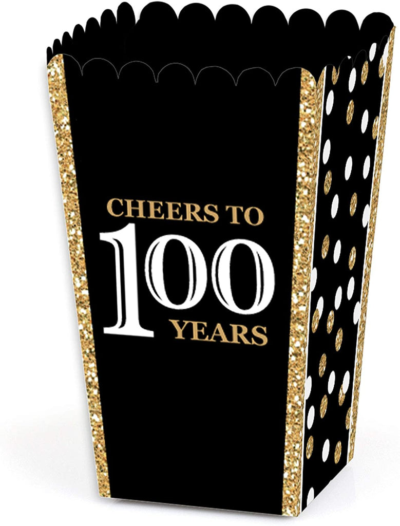 Adult 100th Birthday - Gold - Birthday Party Favor Popcorn Treat Boxes - Set of 12