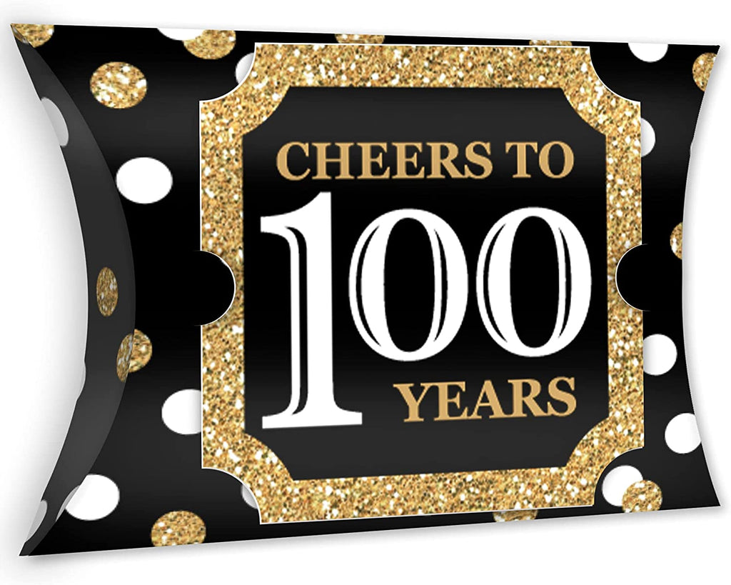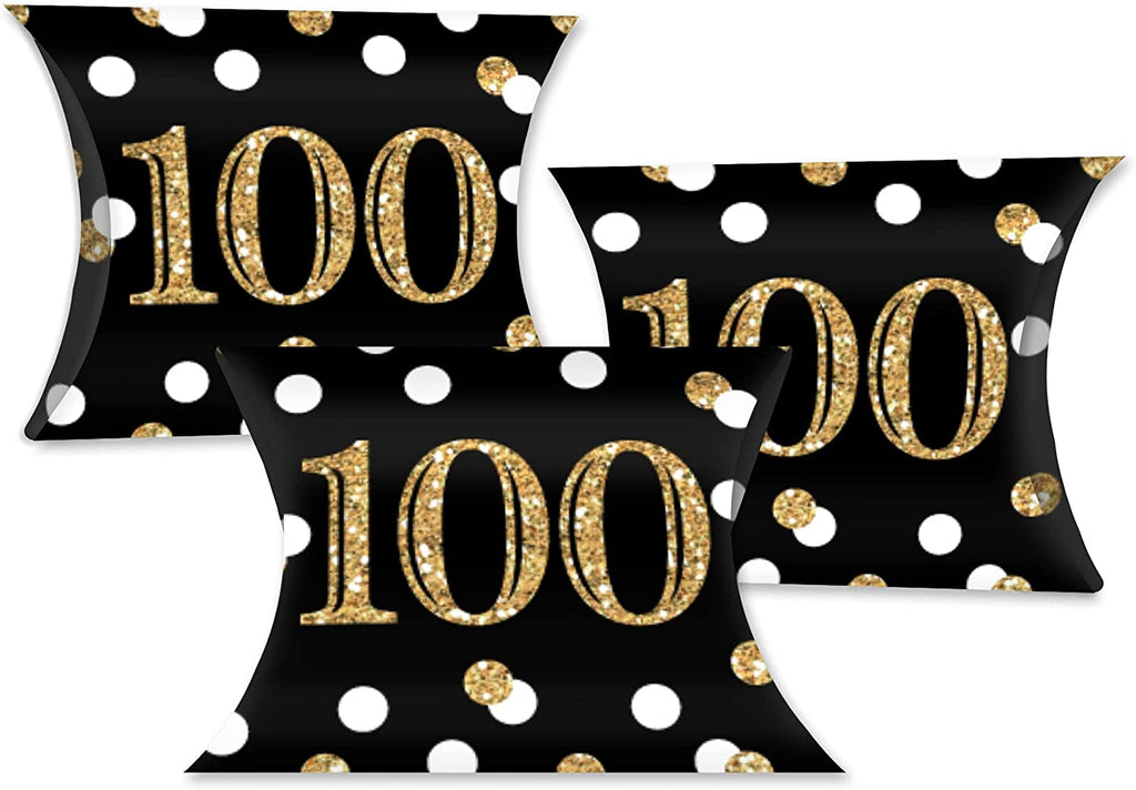 Adult 100th Birthday - Gold - Favor Gift Boxes - Birthday Party Large Pillow Boxes - Set of 12