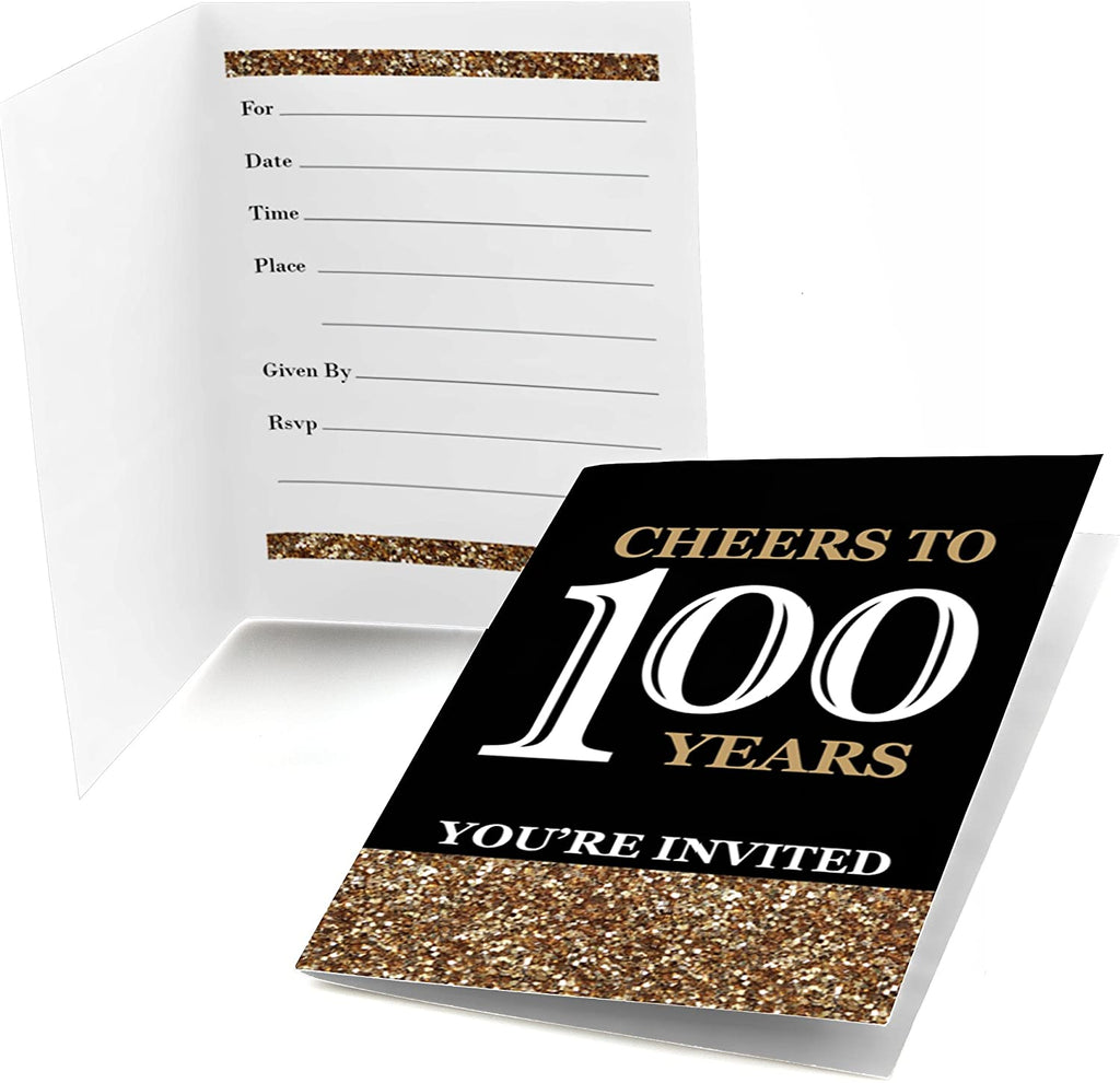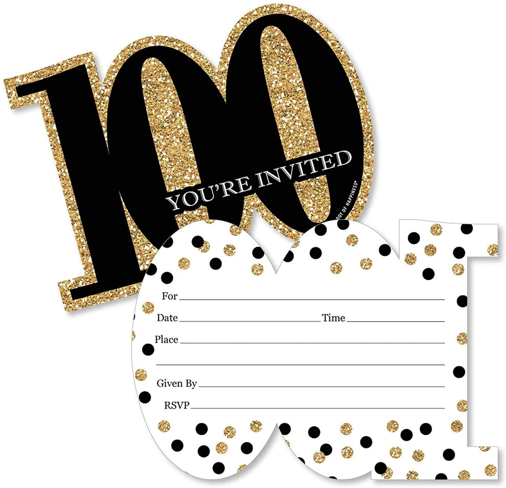 Adult 100th Birthday - Gold - Fill-In Birthday Party Invitations (8 count)
