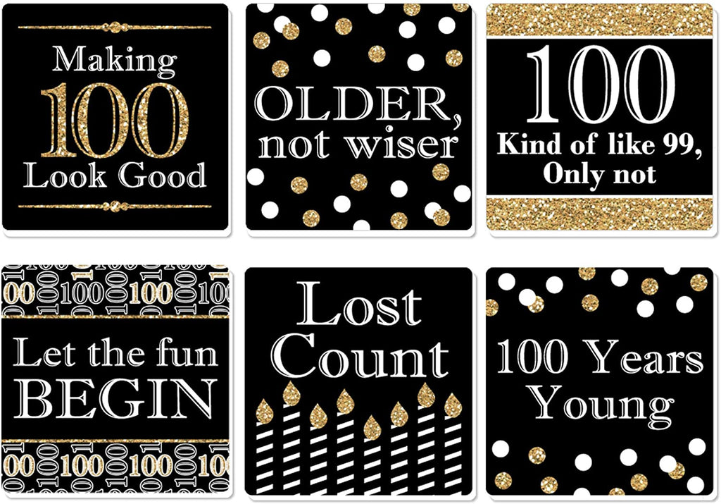 Adult 100th Birthday - Gold - Funny Birthday Party Decorations - Drink Coasters - Set of 6