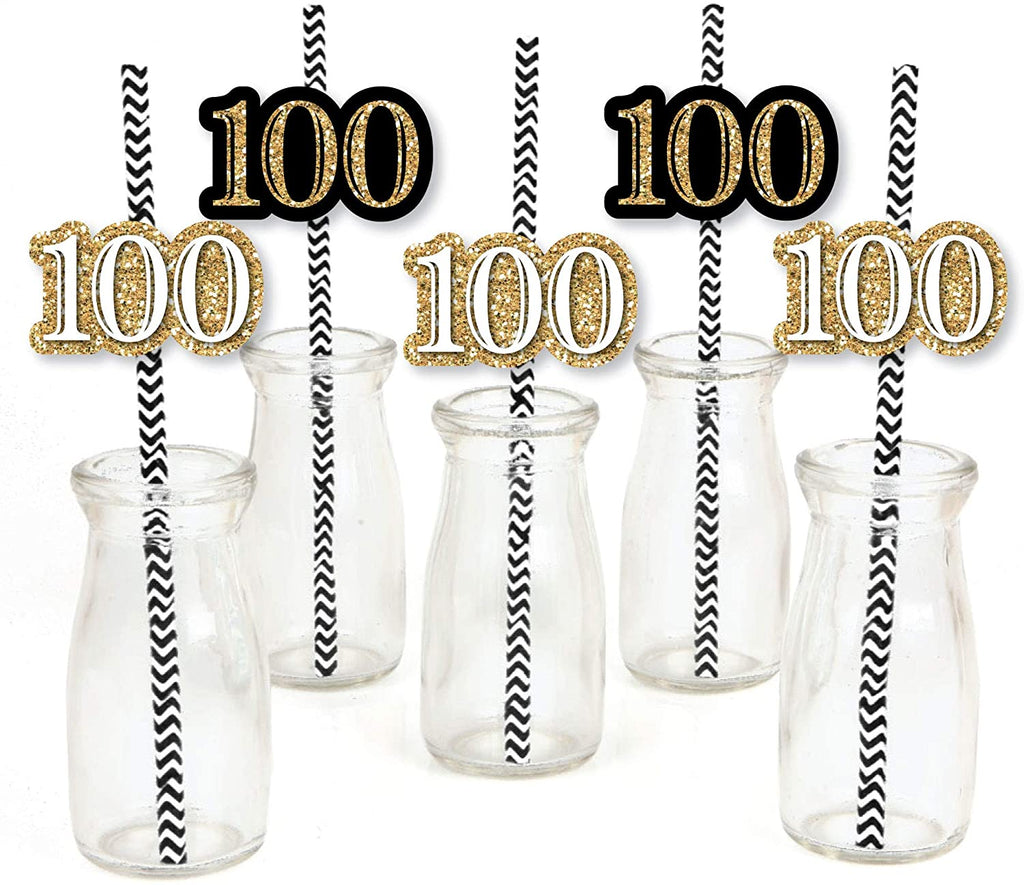 Adult 100th Birthday - Gold - Paper Straw Decor - Birthday Party Striped Decorative Straws - Set of 24