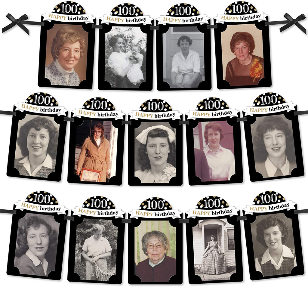Adult 100th Birthday - Gold - DIY Birthday Party Decor - Picture Display - Photo Banner