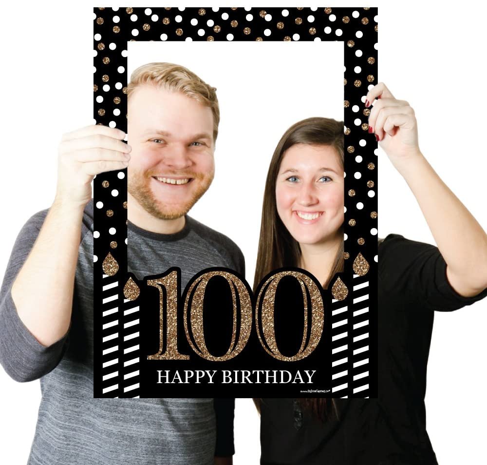 Adult 100th Birthday - Gold - Birthday Party Selfie Photo Booth Picture Frame & Props is backordered and will ship as soon as it is back in stock.