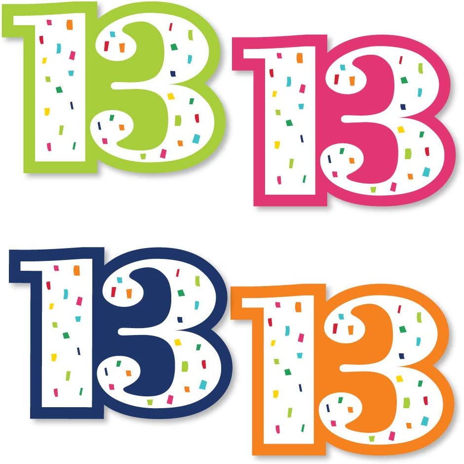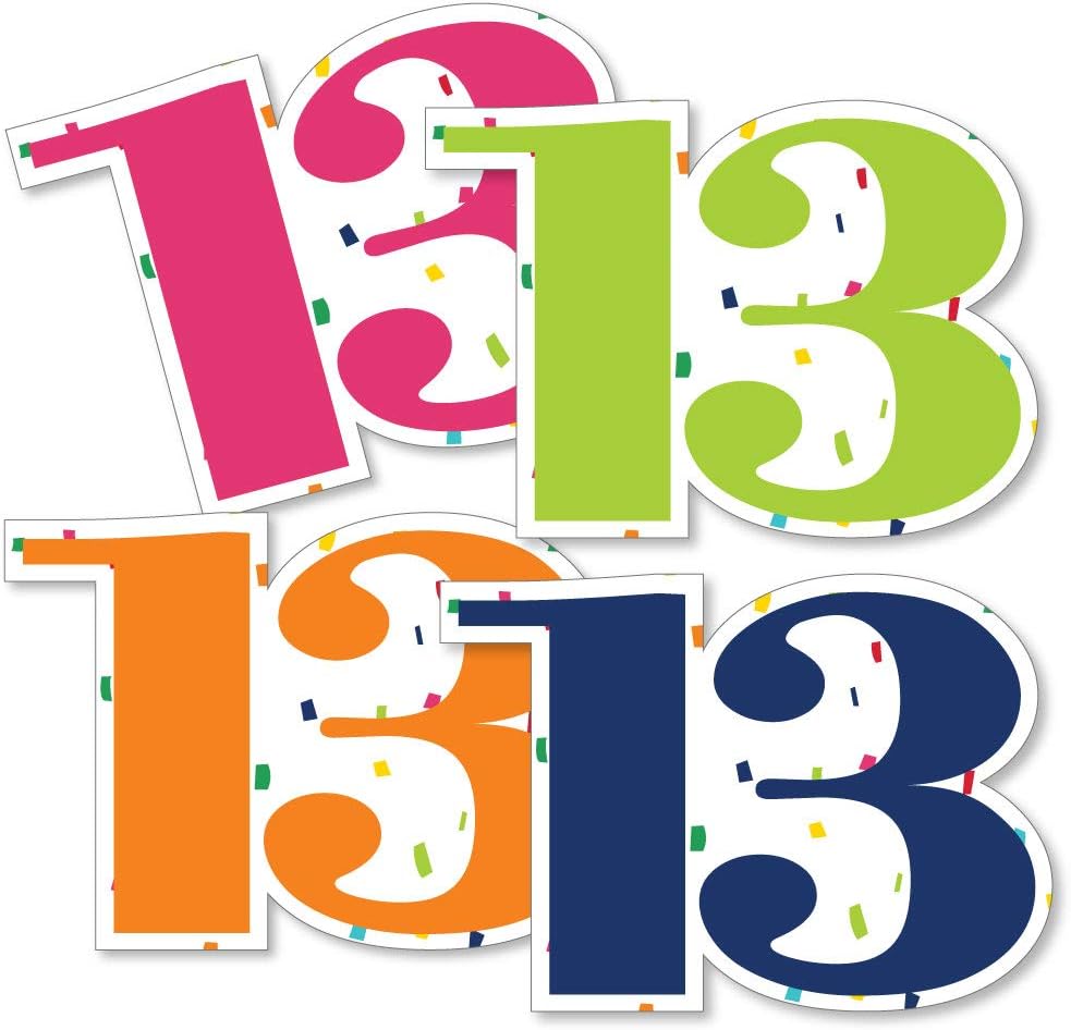 13th Birthday - Cheerful Happy Birthday - Thirteen Shaped Decorations DIY Colorful Thirteenth Birthday Party Essentials - Set of 20