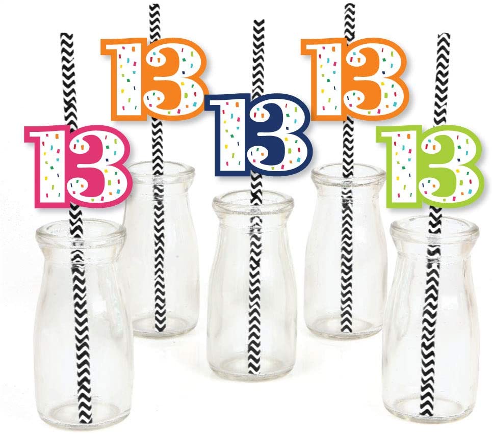 13th Birthday - Cheerful Happy Birthday - Paper Straw Decor - Colorful Thirteenth Birthday Party Striped Decorative Straws - Set of 24