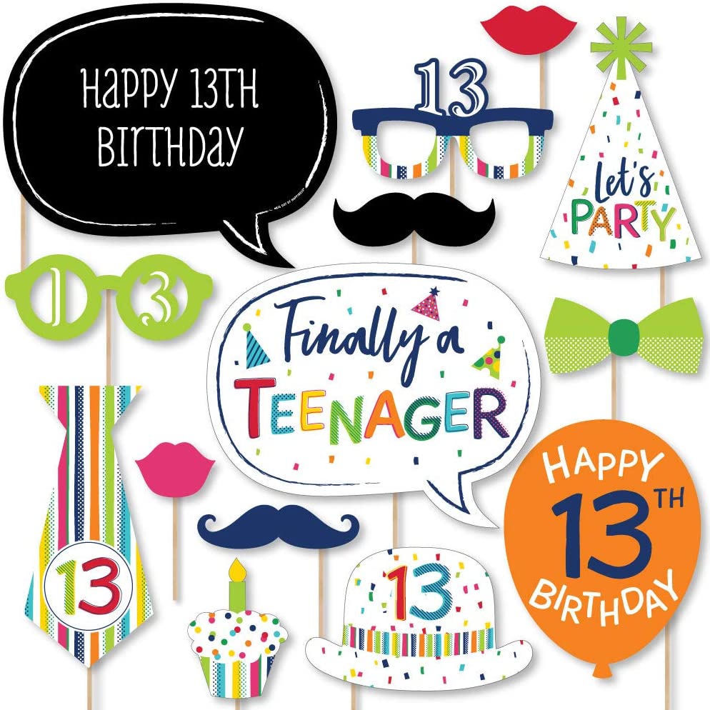13th Birthday - Cheerful Happy Birthday - Colorful Thirteenth Birthday Party Photo Booth Props Kit - 20 Count