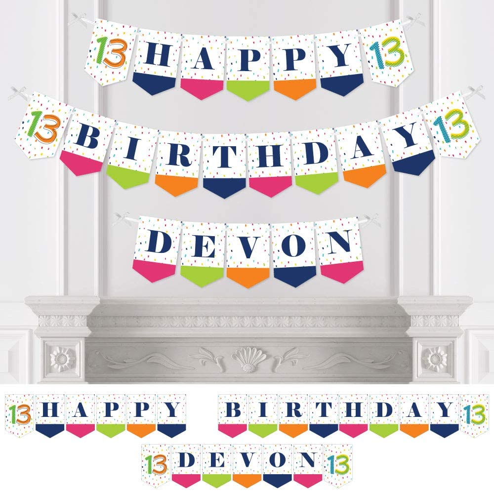 Personalized 13th Birthday - Cheerful Happy Birthday - Custom Colorful Thirteenth Birthday Party Bunting Banner & Decorations - Happy Birthday Custom Name Banner