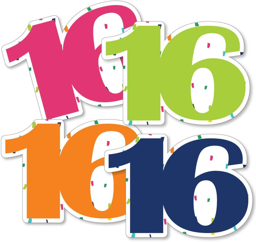 16th Birthday - Cheerful Happy Birthday - Sixteen Shaped Decorations DIY Colorful Sweet Sixteen Birthday Party Essentials - Set of 20