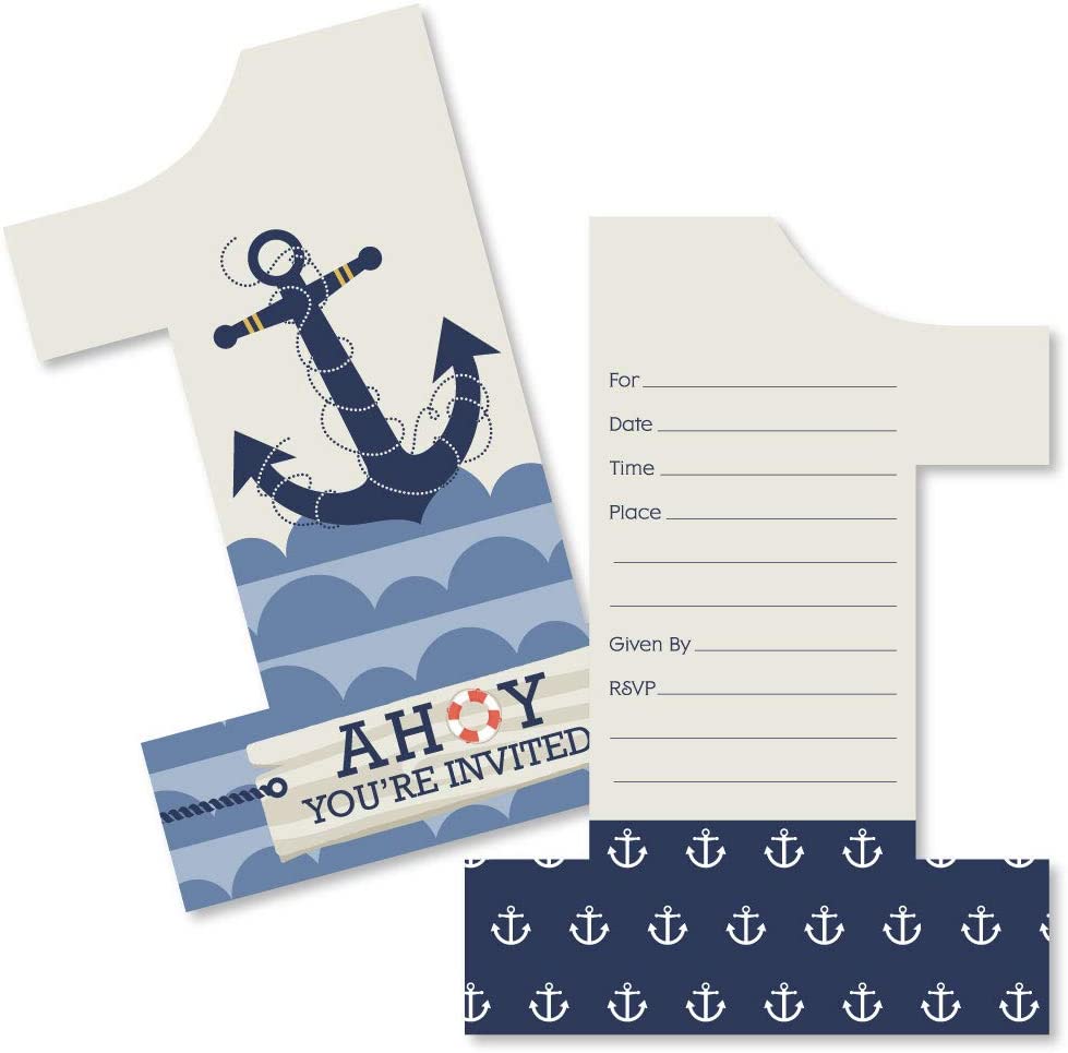 1st Birthday Ahoy - Nautical - Shaped Fill-In Invitations - First Birthday Party Invitation Cards with Envelopes - Set of 12