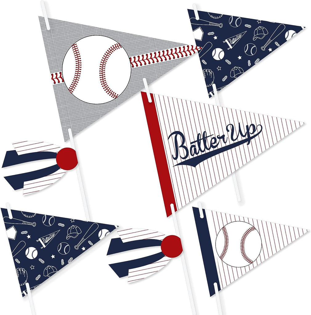 Batter Up - Baseball - Triangle Baby Shower or Birthday Party Photo Props - Pennant Flag Centerpieces - Set of 20