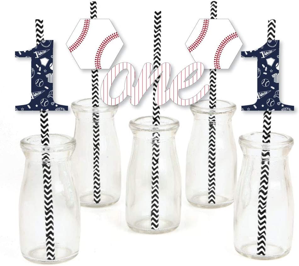 1st Birthday Batter Up - Baseball - Paper Straw Decor - First Birthday Party Striped Decorative Straws - Set of 24