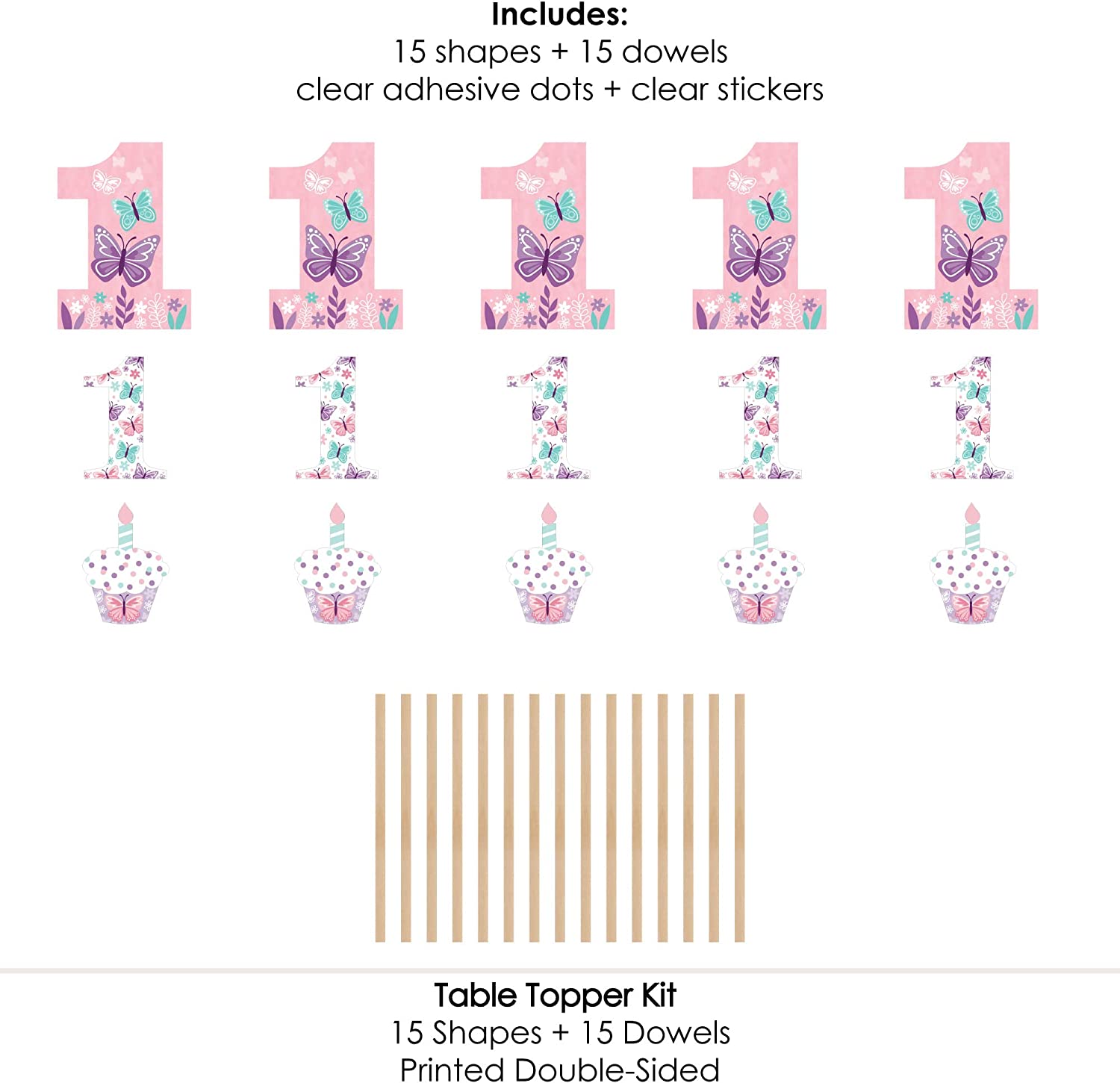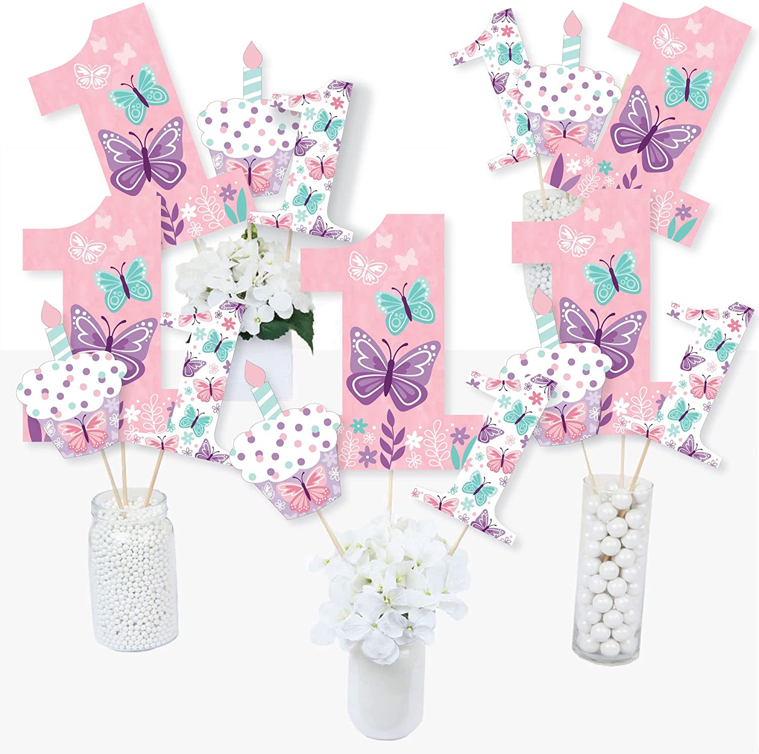 1st Birthday Beautiful Butterfly - Floral First Birthday Party Centerpiece Sticks - Table Toppers - Set of 15 is backordered and will ship as soon as it is back in stock.