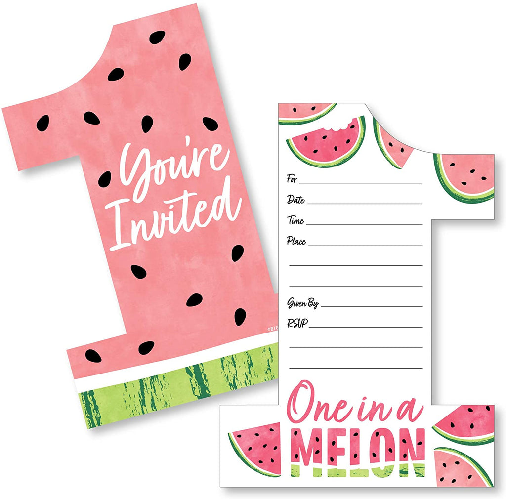 1st Birthday One in a Melon - Shaped Fill-In Invitations - Fruit First Birthday Party Invitation Cards with Envelopes - Set of 12
