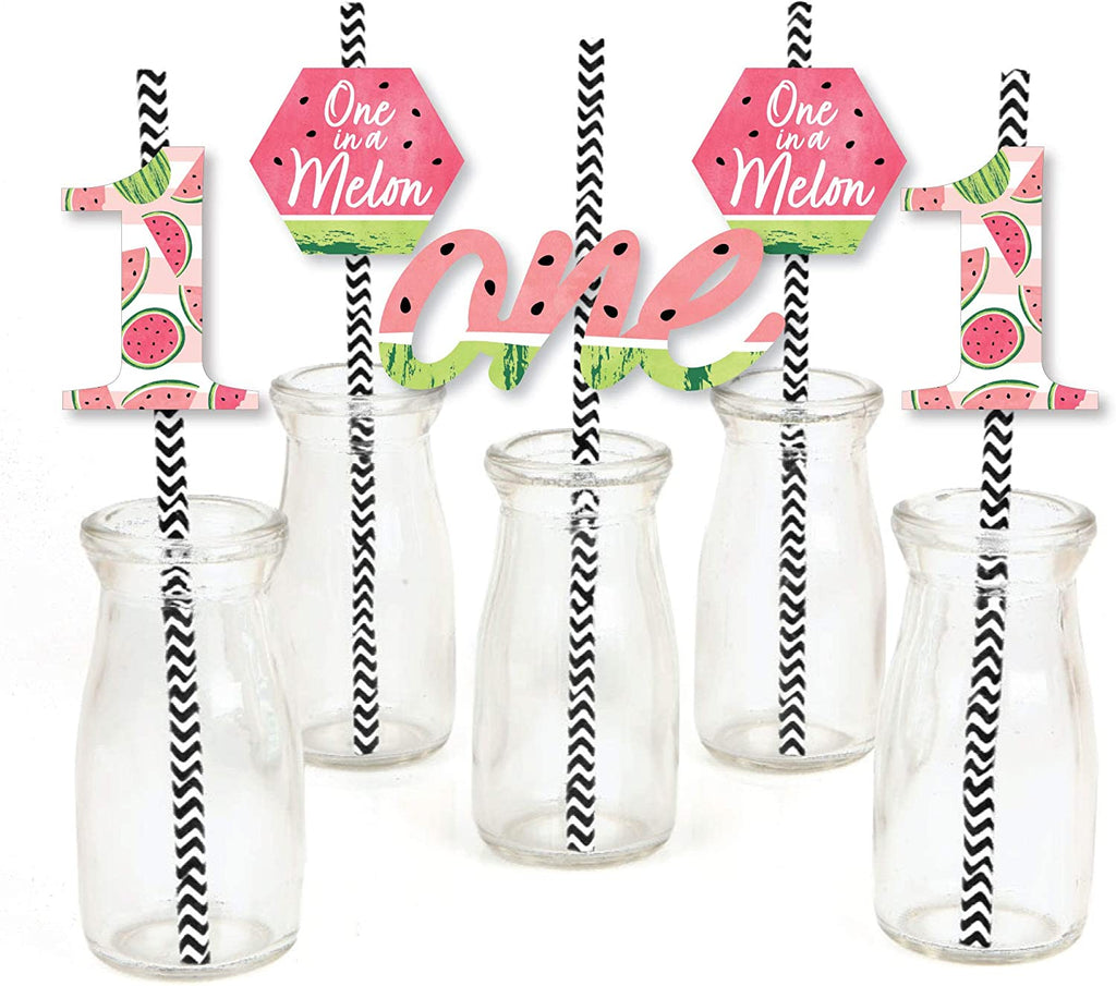 1st Birthday One in a Melon - Paper Straw Decor - Fruit First Birthday Party Striped Decorative Straws - Set of 24