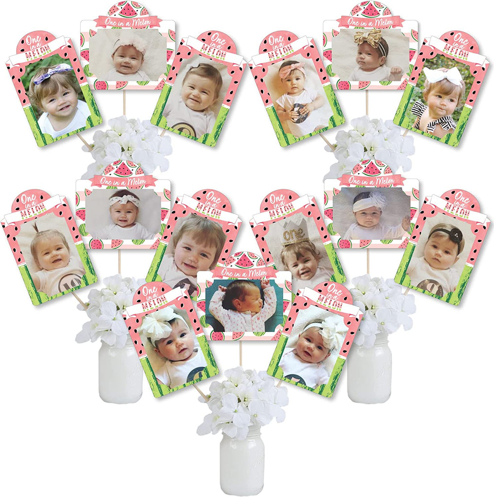 1st Birthday One in a Melon - Fruit First Birthday Party Picture Centerpiece Sticks - Photo Table Toppers - 15 Pieces