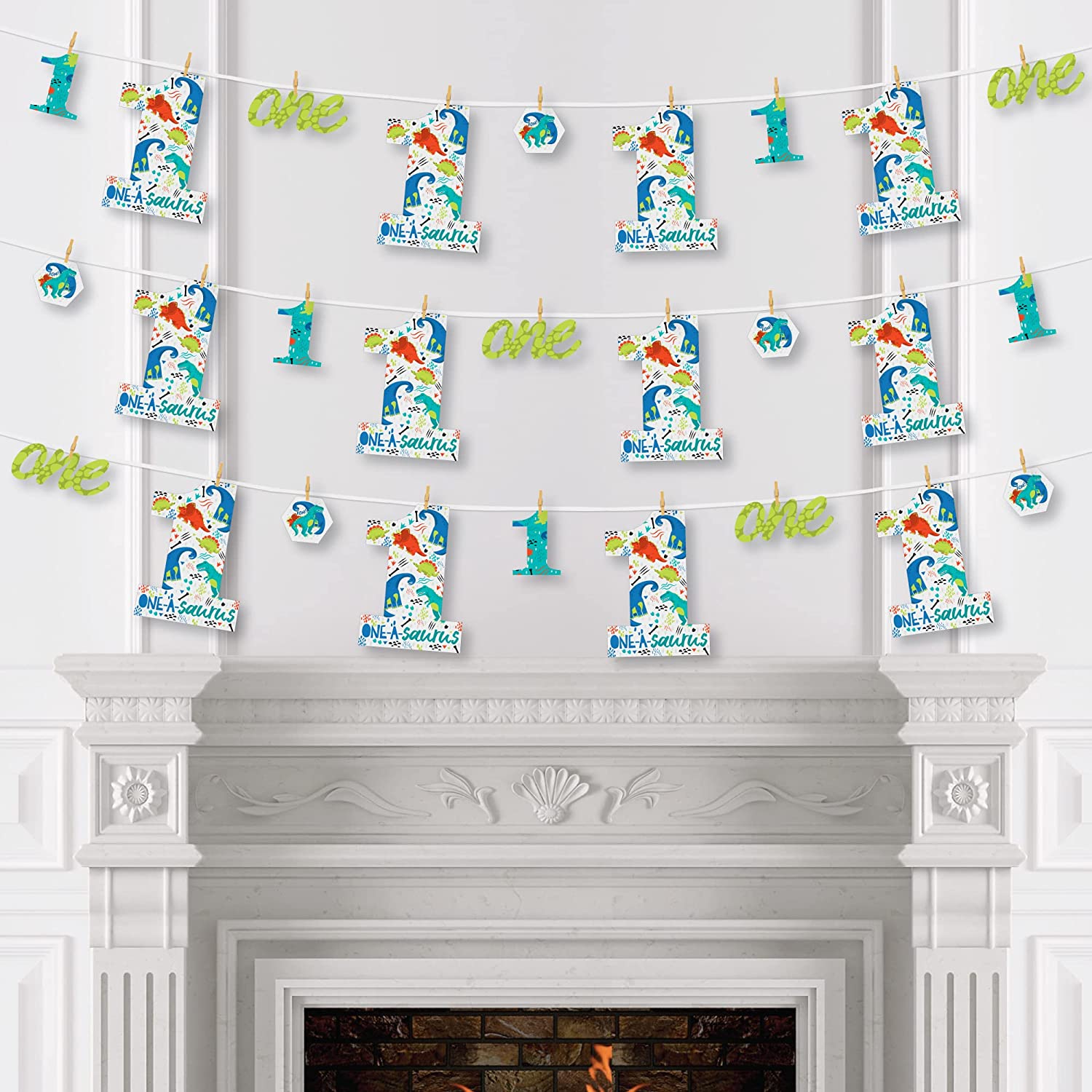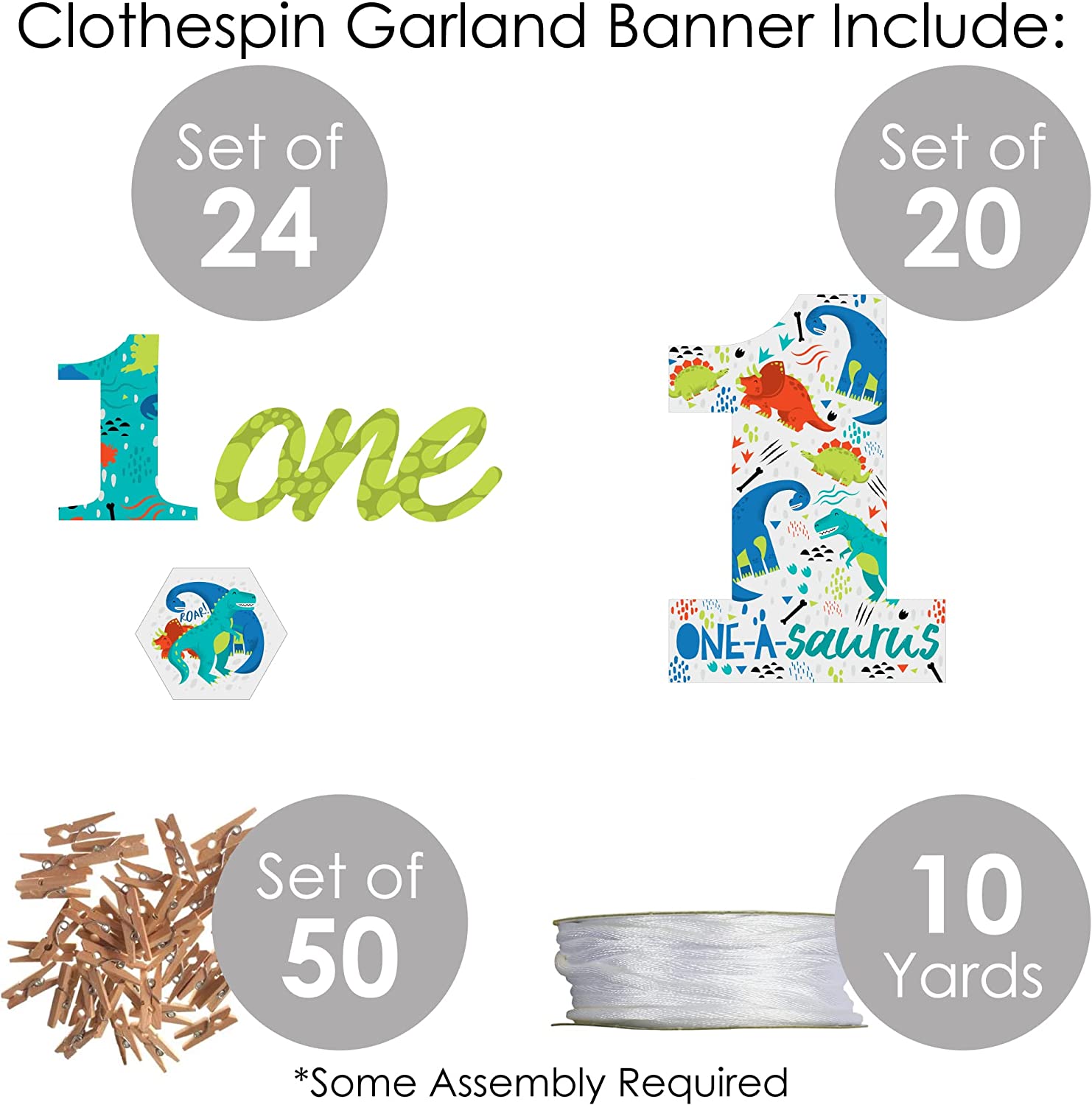 1st Birthday Roar Dinosaur - ONEasaurus Dino First Birthday Party DIY Decorations - Clothespin Garland Banner - 44 Pieces