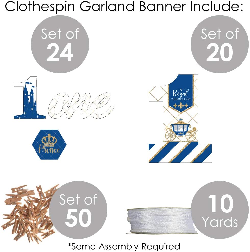 1st Birthday Royal Prince Charming - First Birthday Party DIY Decorations - Clothespin Garland Banner - 44 Pieces is backordered and will ship as soon as it is back in stock.