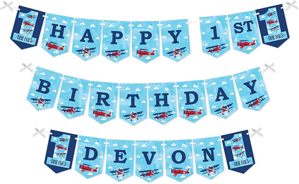 Personalized 1st Birthday Taking Flight - Airplane - Custom Vintage Plane First Birthday Party Bunting Banner and Decorations - Happy 1st Birthday Custom Name Banner