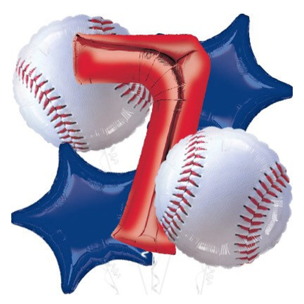 Baseball Theme Party and Big Red Number Balloon Bouquet - 5 Balloons - With Helium