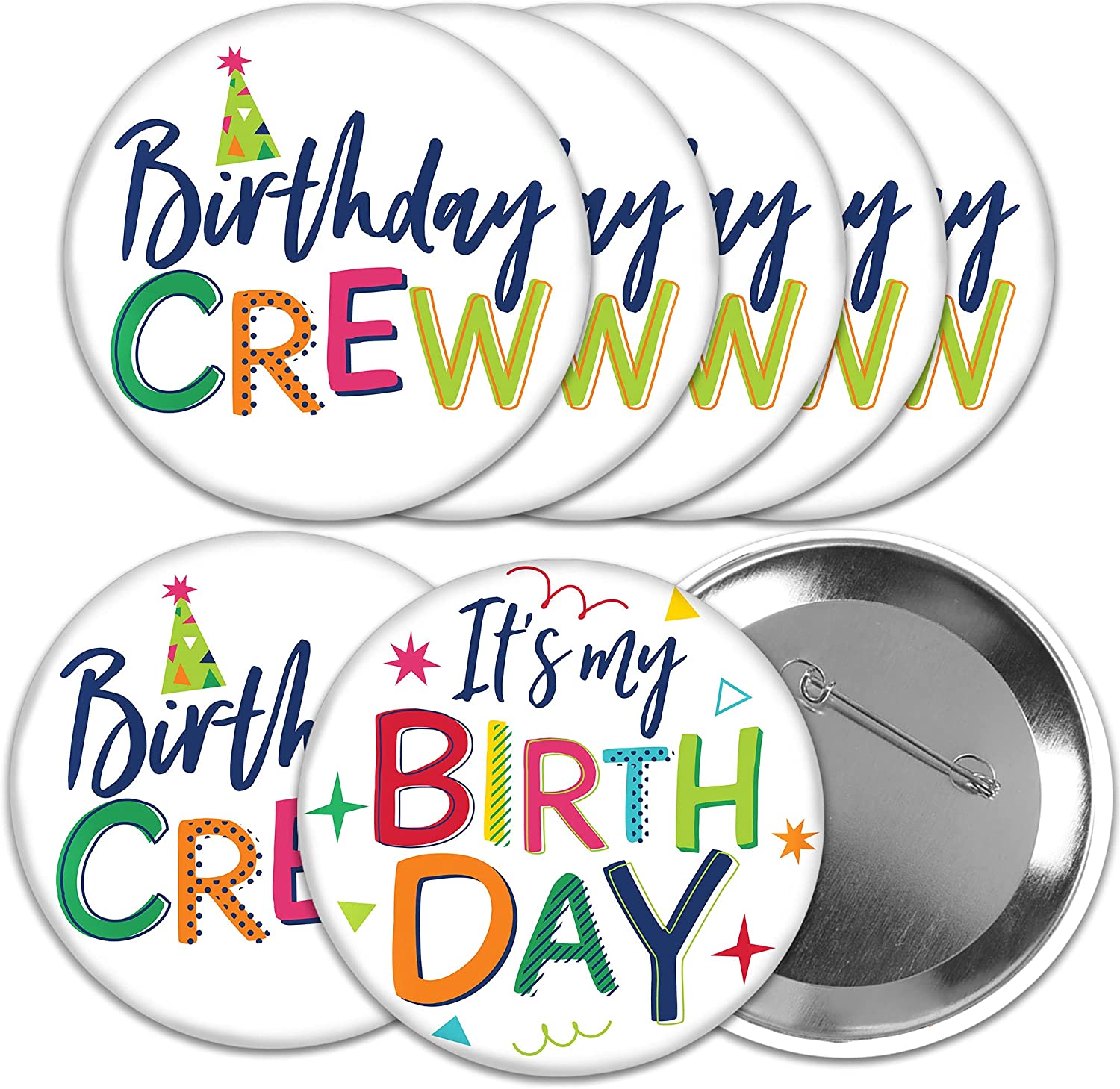 Cheerful Happy Birthday - 3 inch Colorful Birthday Party Badge - Pinback Buttons - Set of 8 is backordered and will ship as soon as it is back in stock.
