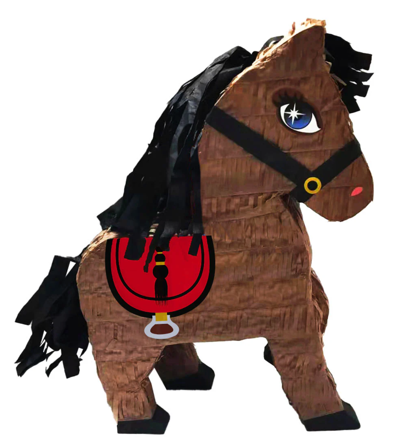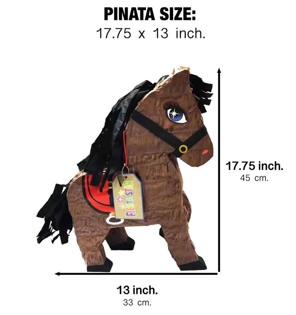 Brown Horse Pinata 17.75 x 13 x 5 Inches Party Game, Table Centerpiece Decoration and Photo Prop for Kids Birthdays and Baby Showers, with Hanger and Fill Door
