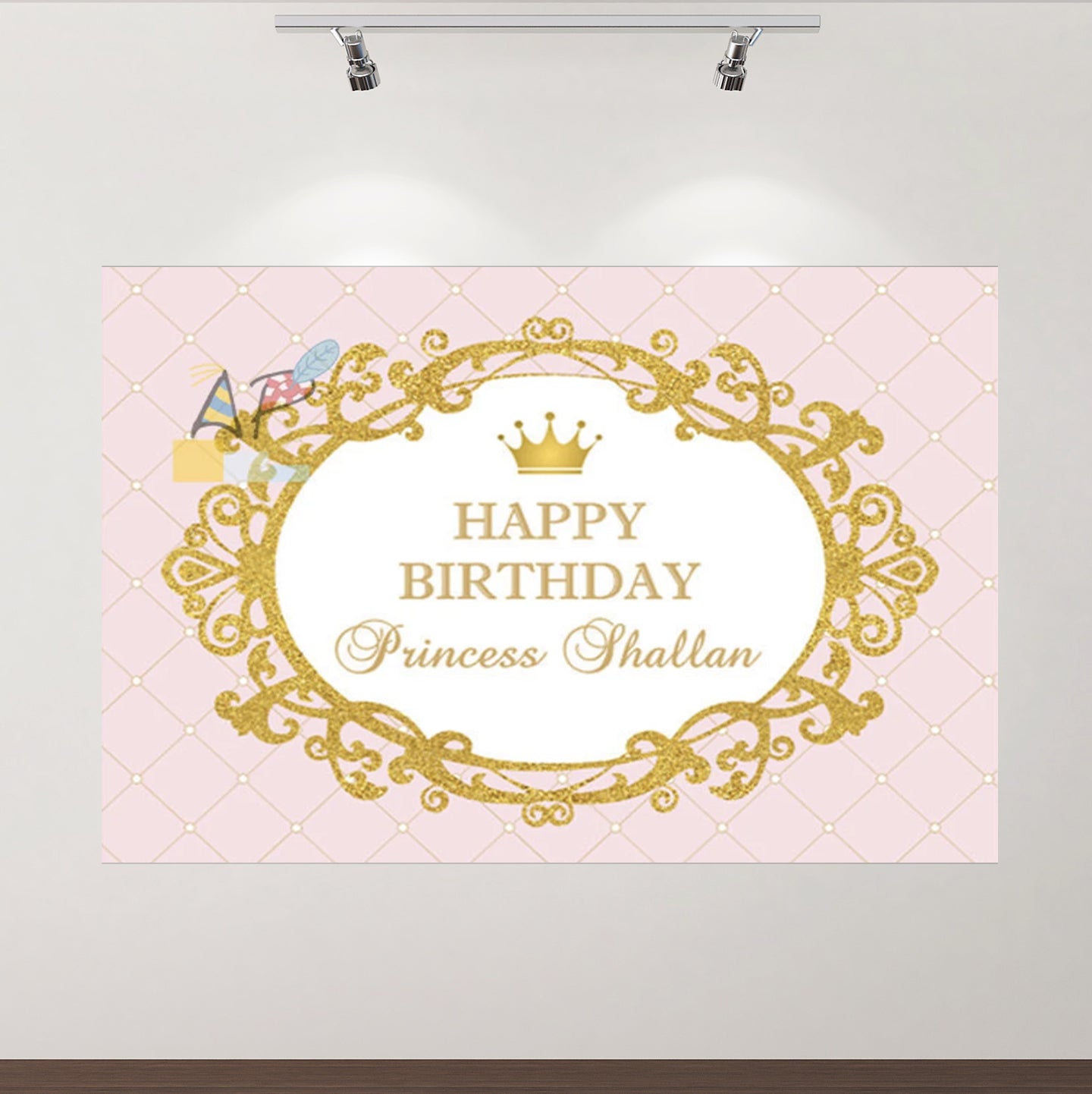 Custom Pink And Gold Princess Birthday Poster Backdrop 60x40 Inch