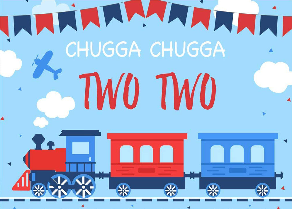 Blue Red Train for Chugga Chugga Two Two Birthday Poster Backdrop 60x40 Inch