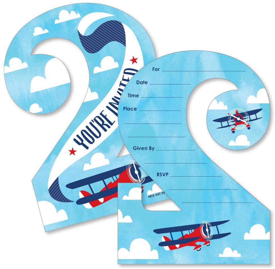 2nd Birthday Taking Flight - Airplane - Shaped Fill-In Invitations - Vintage Plane Second Birthday Party Invitation Cards with Envelopes - Set of 12 is backordered and will ship as soon as it is back in stock.