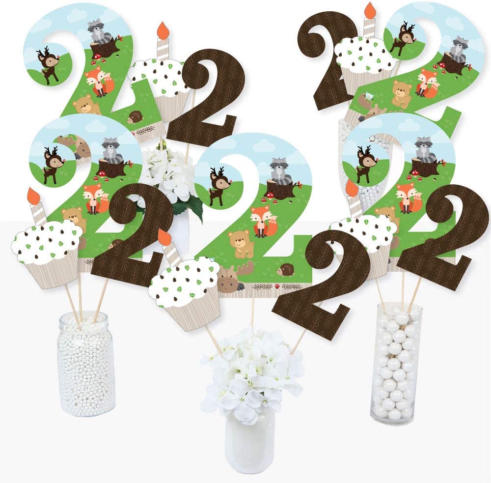 2nd Birthday Woodland Creatures - Second Birthday Party Centerpiece Sticks - Table Toppers - Set of 15