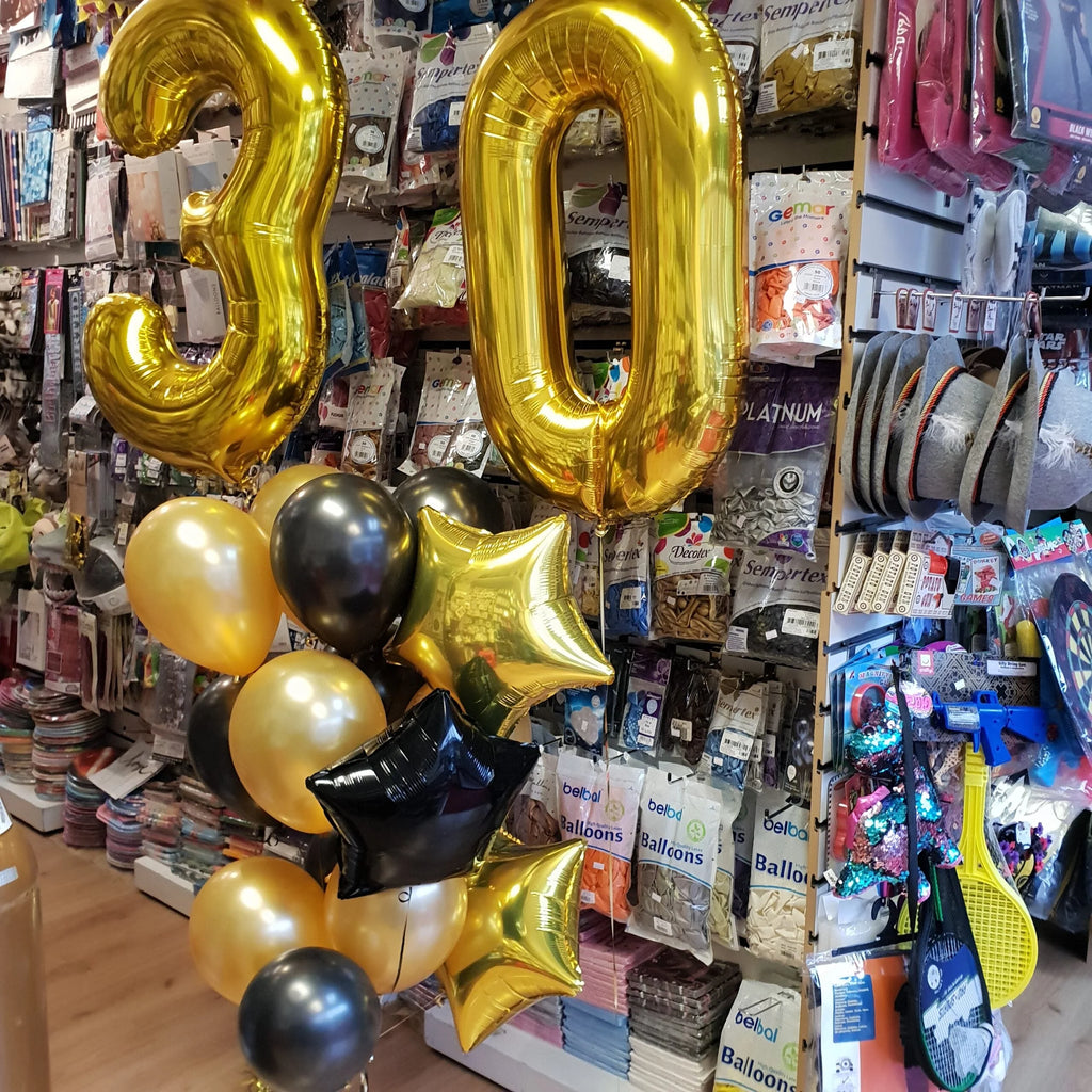 Happy 30 Birthday Giant Black and Gold Balloon Bouquet - 22 Balloons - With Helium