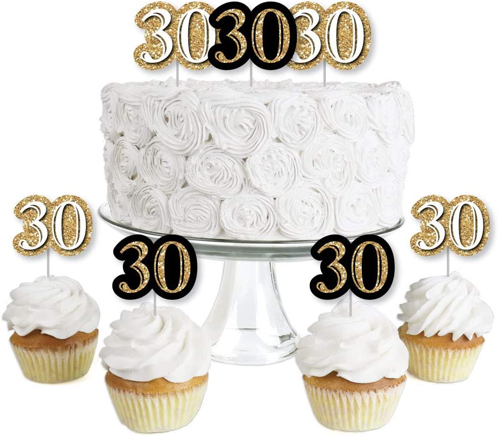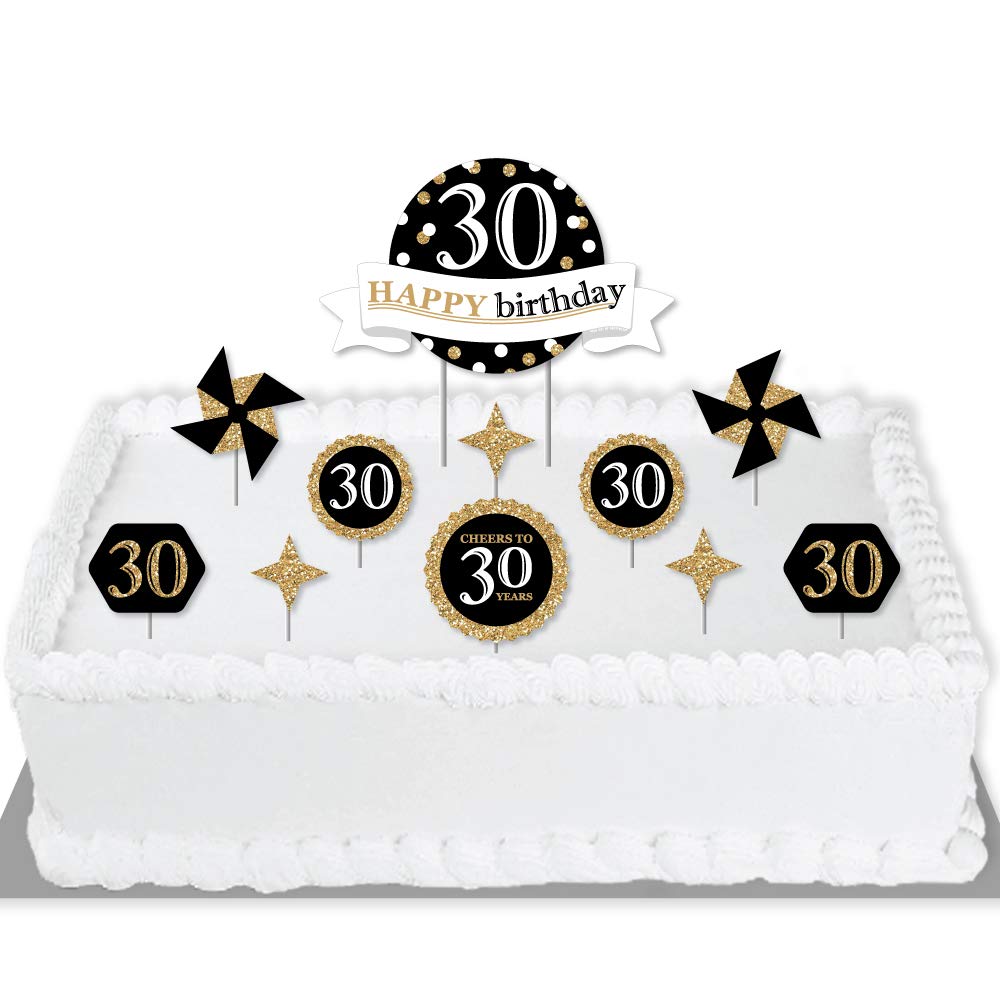Adult 30th Birthday - Gold - Birthday Party Cake Decorating Kit - Happy Birthday Cake Topper Set - 11 Pieces