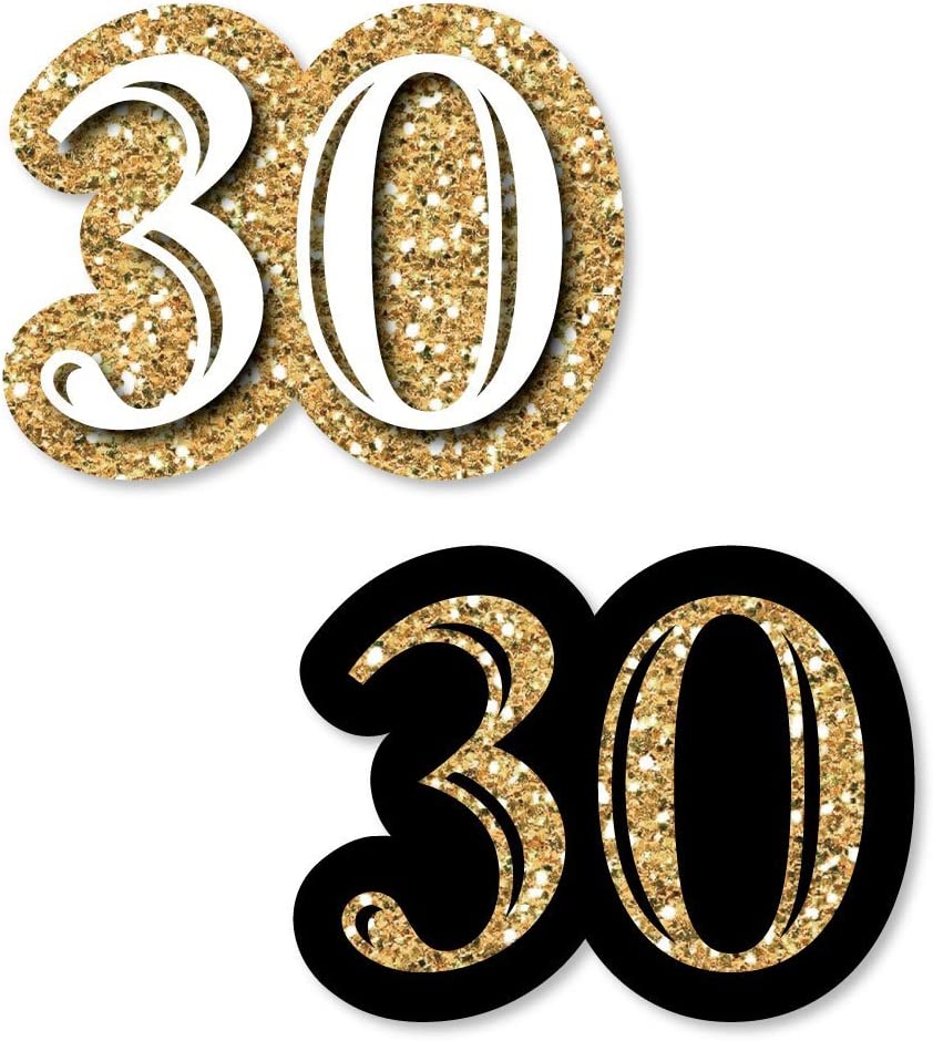 Adult 30th Birthday - Gold - DIY Shaped Birthday Party Cut-Outs - 24 Count