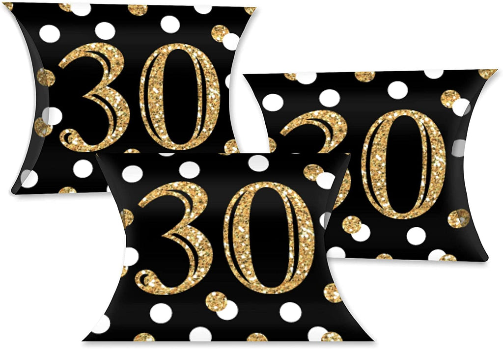 Adult 30th Birthday - Gold - Favor Gift Boxes - Birthday Party Large Pillow Boxes - Set of 12