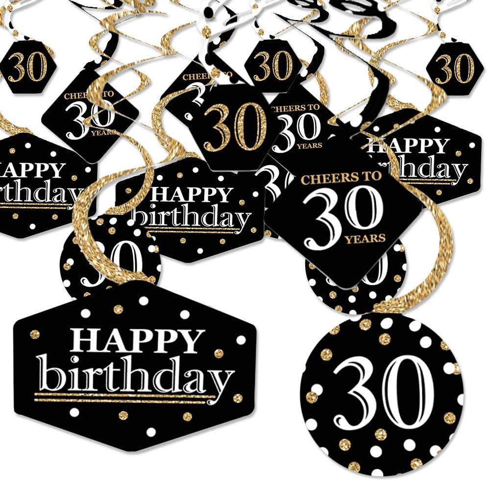 Adult 30th Birthday - Gold - Birthday Party Hanging Decor - Party Decoration Swirls - Set of 40
