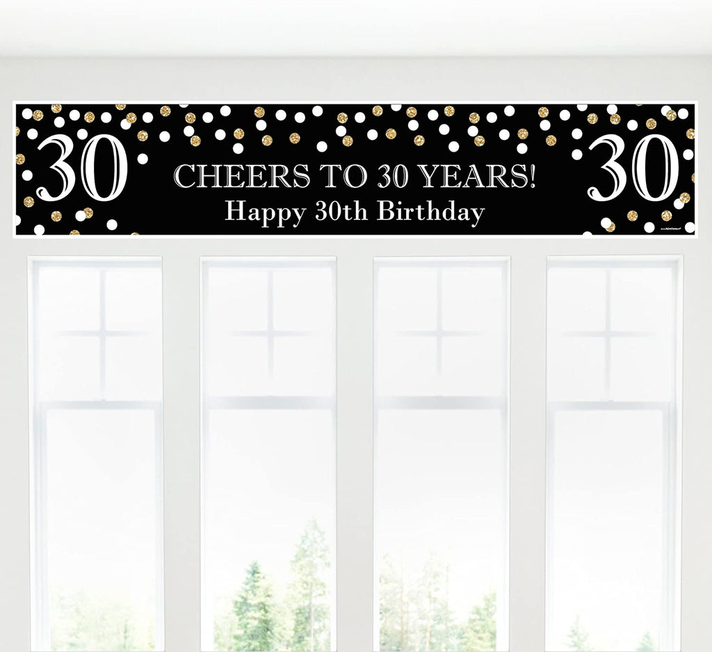 Adult 30th Birthday - Gold - Happy Birthday Decorations Party Banner