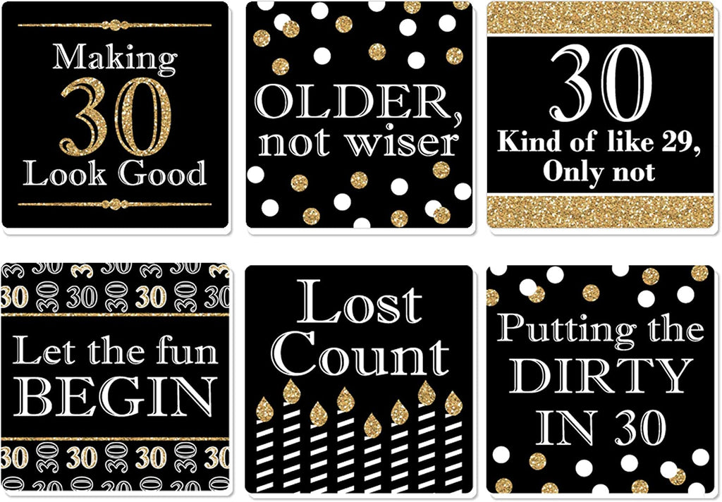 Adult 30th Birthday - Gold - Funny Birthday Party Decorations - Drink Coasters - Set of 6