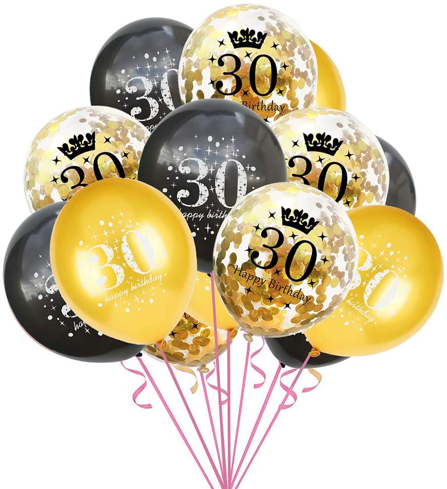 15 Packs Confetti Balloons 12 Inch Latex Clear Birthday Balloons (30 years old) - With Helium