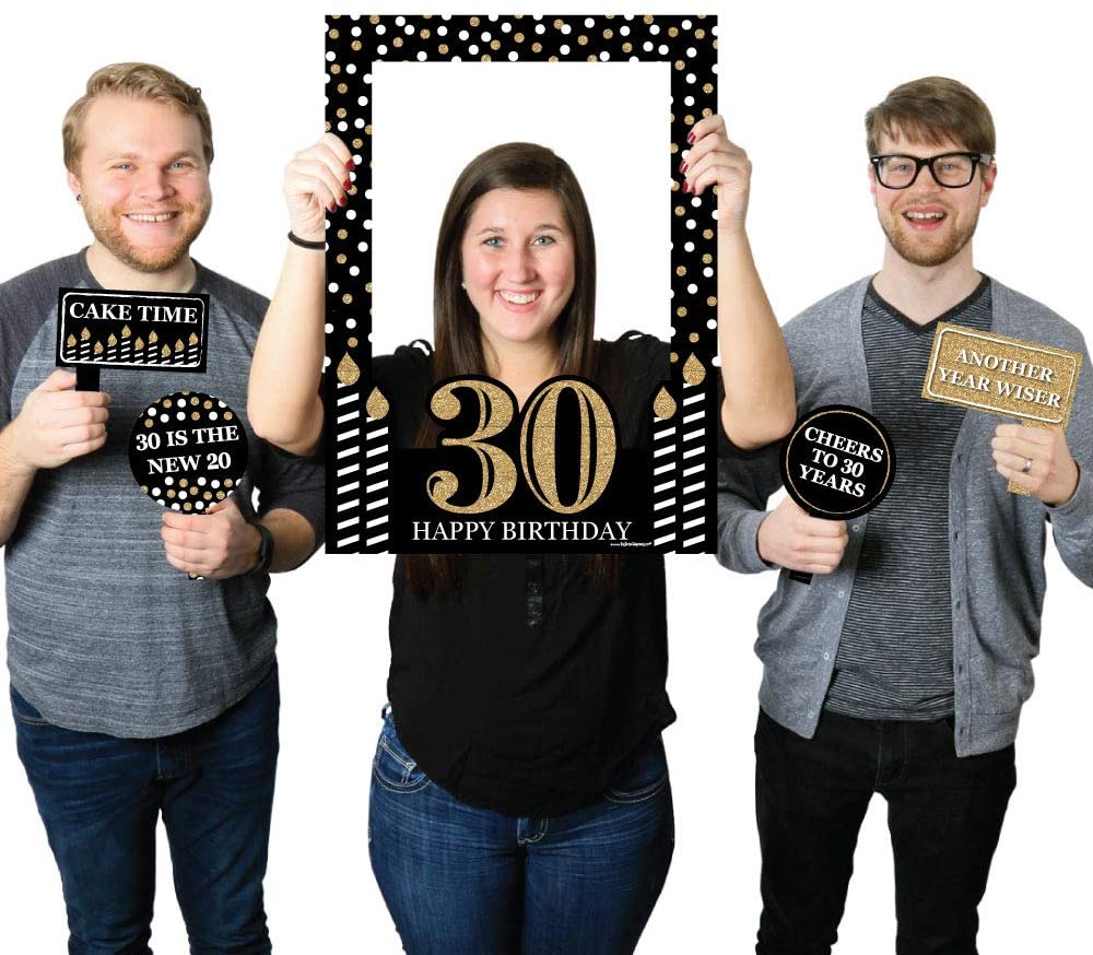 Adult 30th Birthday - Gold - Birthday Party Selfie Photo Booth Picture Frame & Props is backordered and will ship as soon as it is back in stock.