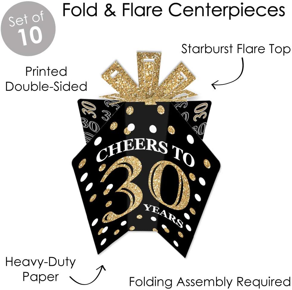 Adult 30th Birthday - Gold - Table Decorations - Birthday Party Fold and Flare Centerpieces - 10 Count is backordered and will ship as soon as it is back in stock.