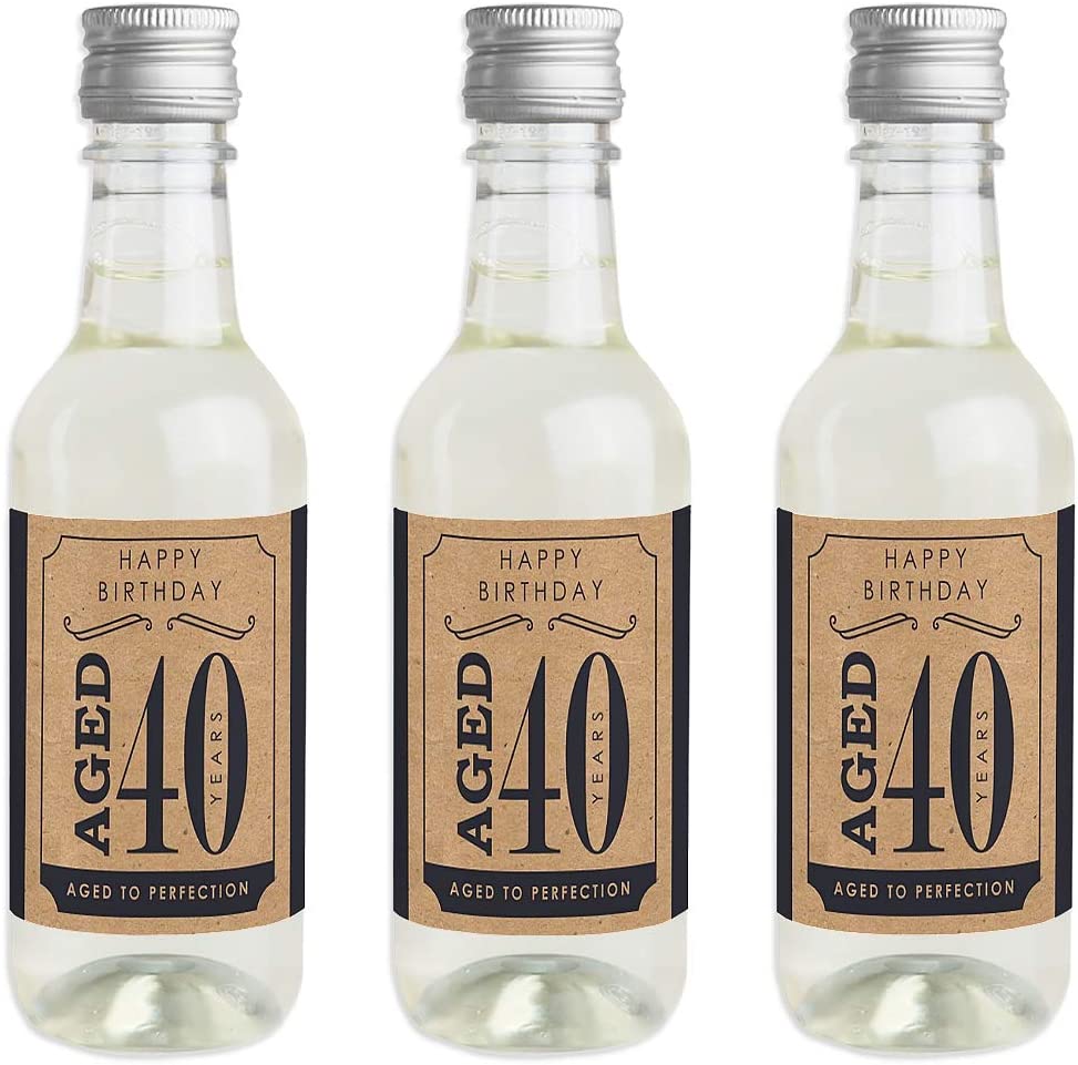 40th Milestone Birthday - Mini Wine and Champagne Bottle Label Stickers - Birthday Party Favor Gift for Women and Men - Set of 16
