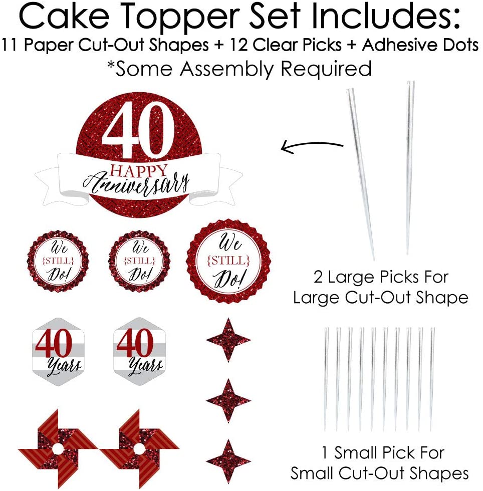 We Still Do - 40th Wedding Anniversary - Anniversary Party Cake Decorating Kit - Happy Anniversary Cake Topper Set - 11 Pieces is backordered and will ship as soon as it is back in stock.