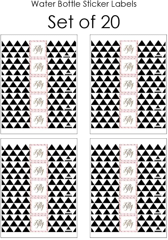 Chic 50th Birthday - Pink, Black and Gold - Birthday Party Water Bottle Sticker Labels - Set of 20 is backordered and will ship as soon as it is back in stock.