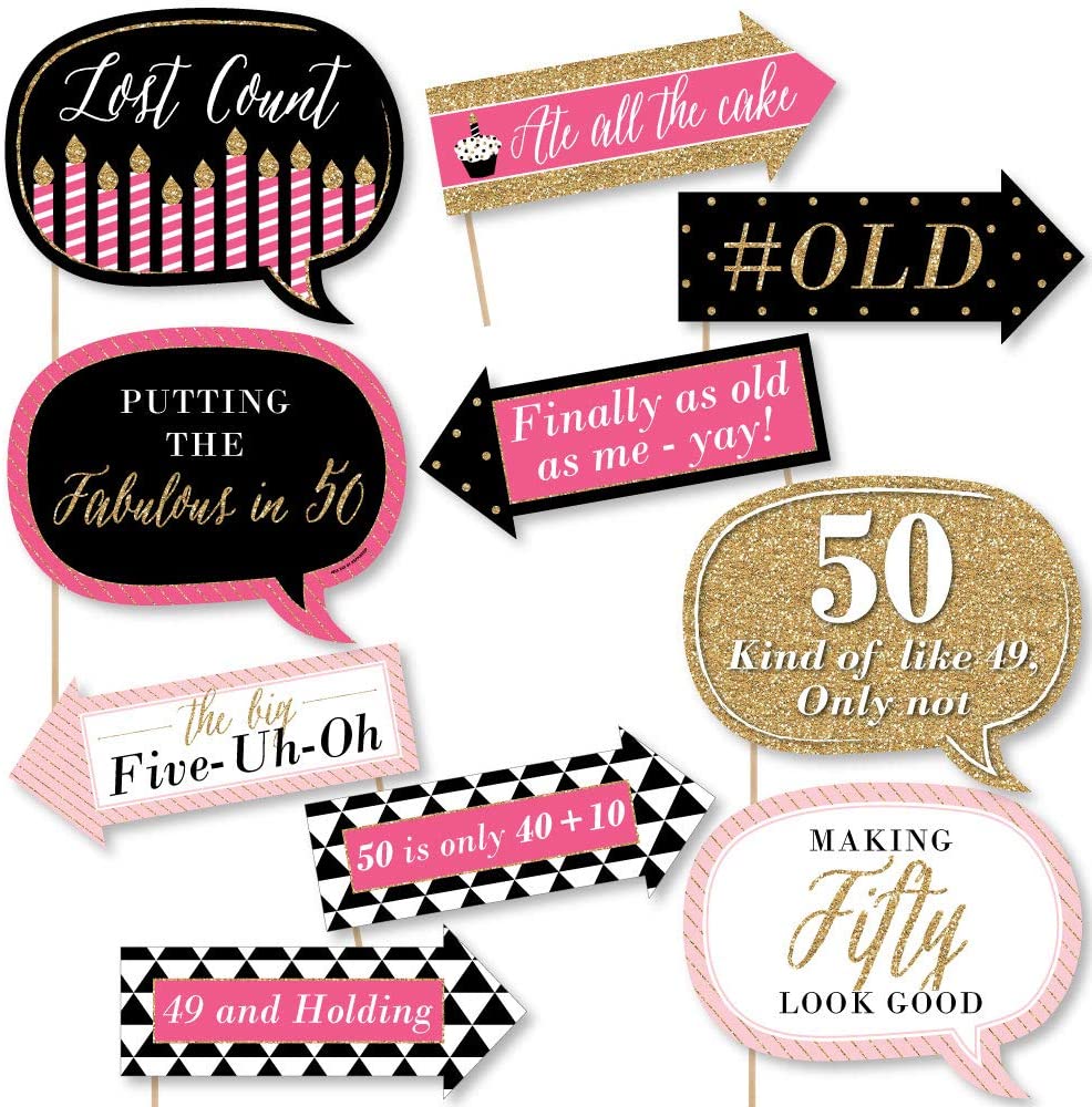 Funny Chic 50th Birthday - Pink, Black and Gold - Birthday Party Photo Booth Props Kit - 10 Piece is backordered and will ship as soon as it is back in stock.