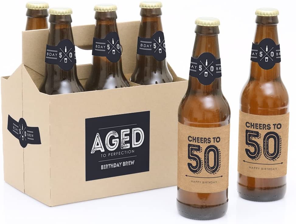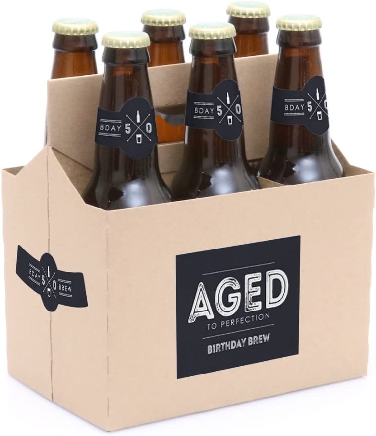 50th Milestone Birthday - Dashingly Aged to Perfection - Birthday Party Decorations for Men - 6 Beer Bottle Label Stickers and 1 Carrier is backordered and will ship as soon as it is back in stock.